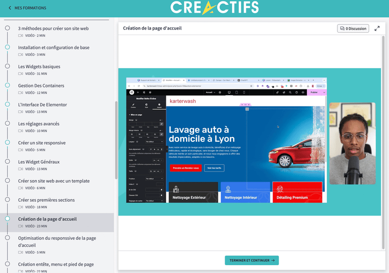 Session de formation en visio : on te montre comment modifier tes contenus, ajouter des pages et gérer ton site au quotidien.