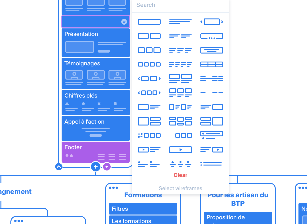 Plus besoin de galérer avec des outils pas adaptés, ici vous avez le meilleur et en plus il est gratuit. En plus du plan, vous pouvez aussi construire les éléments de vos futures pages avant de passer au maquettage. Ça vous permet d’avoir une vue d’ensemble de votre site web (site vitrine, e-commerce ou landing page)