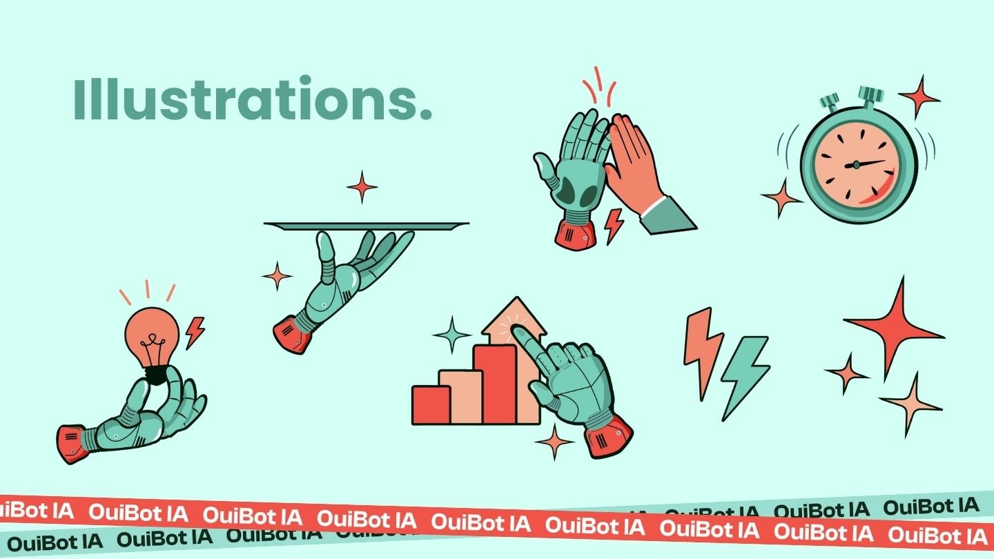 A travers ces illustrations, le but est de transmettre la puissance de la collaboration de l’humain et des intelligences artificielles. Création d’illustrations sur-mesure et d’icons pour représenter les réassurances. Les icons peuvent être utilisés sur les posts des réseaux sociaux, sur des publicités, des flyers, des présentations…