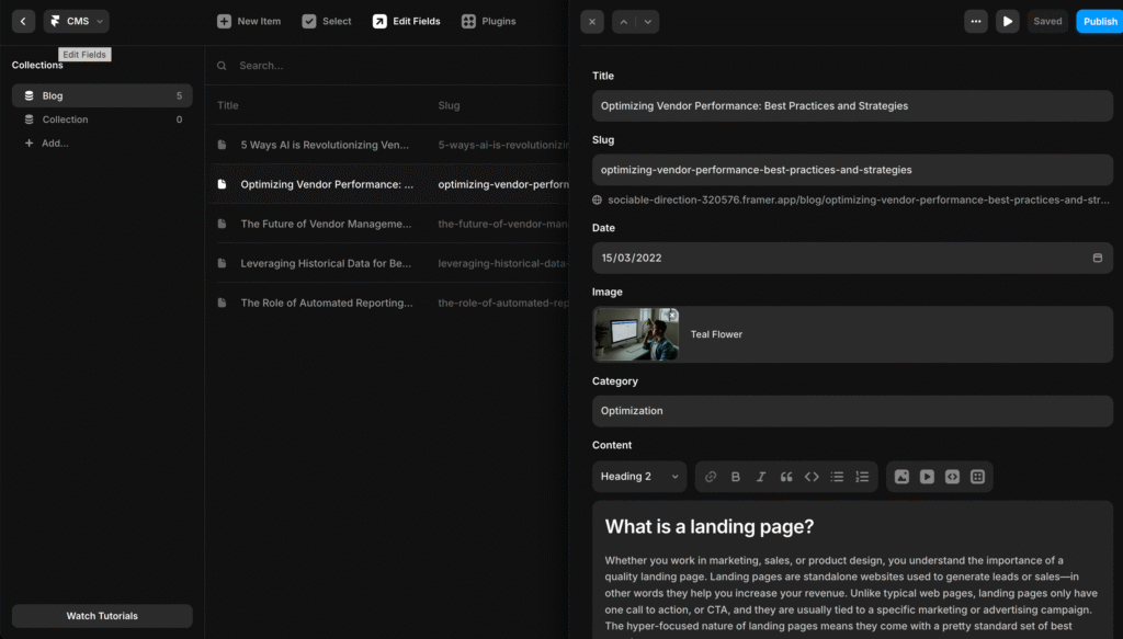Framer te permet maintenant de gérer ton contenu comme un vrai CMS, un peu à la manière de WordPress.