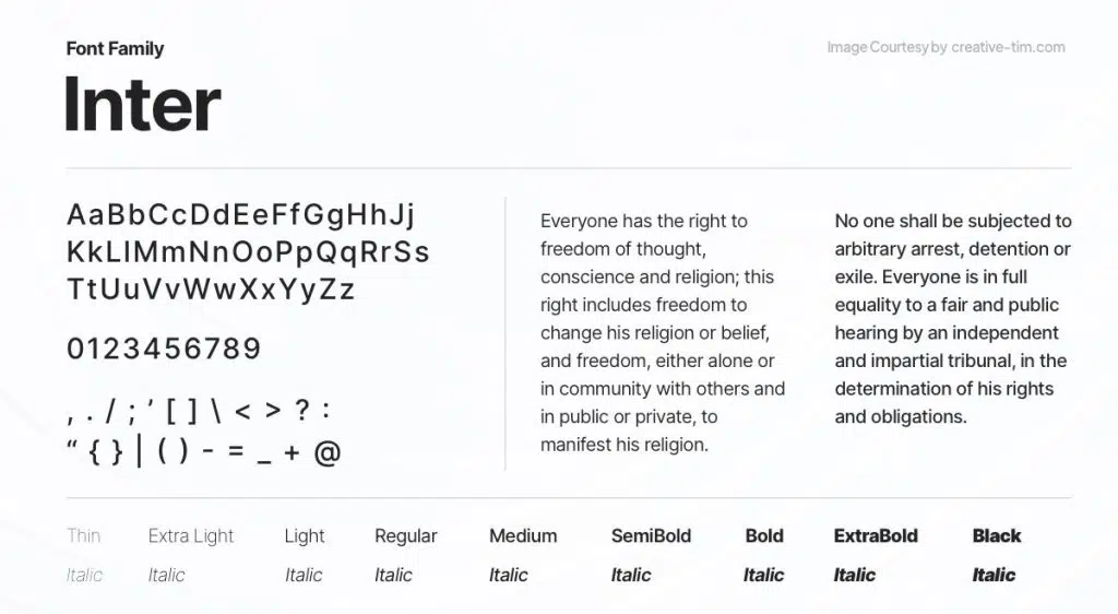 Inter est une typographie sans empattement pensée pour le web. Elle a été spécifiquement conçue pour offrir une excellente lisibilité sur écran, même en petite taille. Ses formes ouvertes et sa grande hauteur d’x (la taille des lettres minuscules) en font une valeur sûre pour l’interface utilisateur.