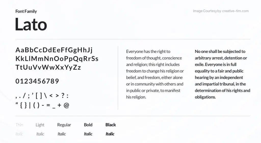 Lato est une typographie sans empattement au style humaniste : ses formes sont à la fois fluides et rigoureuses, avec une touche de chaleur dans un design parfaitement professionnel.