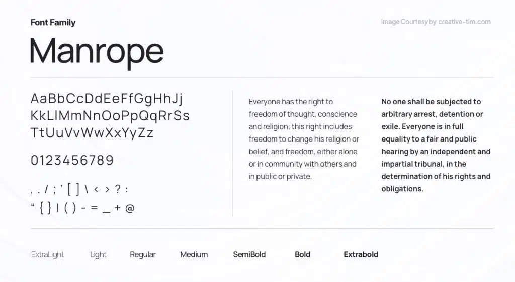 Manrope est une typographie sans empattement à la structure géométrique et moderne. Elle allie sobriété et efficacité, ce qui la rend parfaitement adaptée aux interfaces numériques.