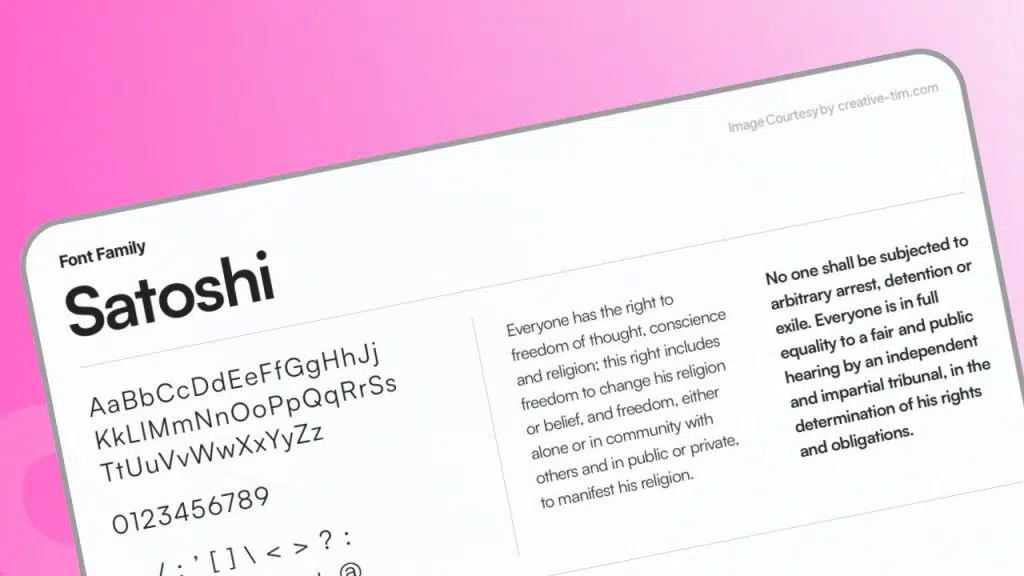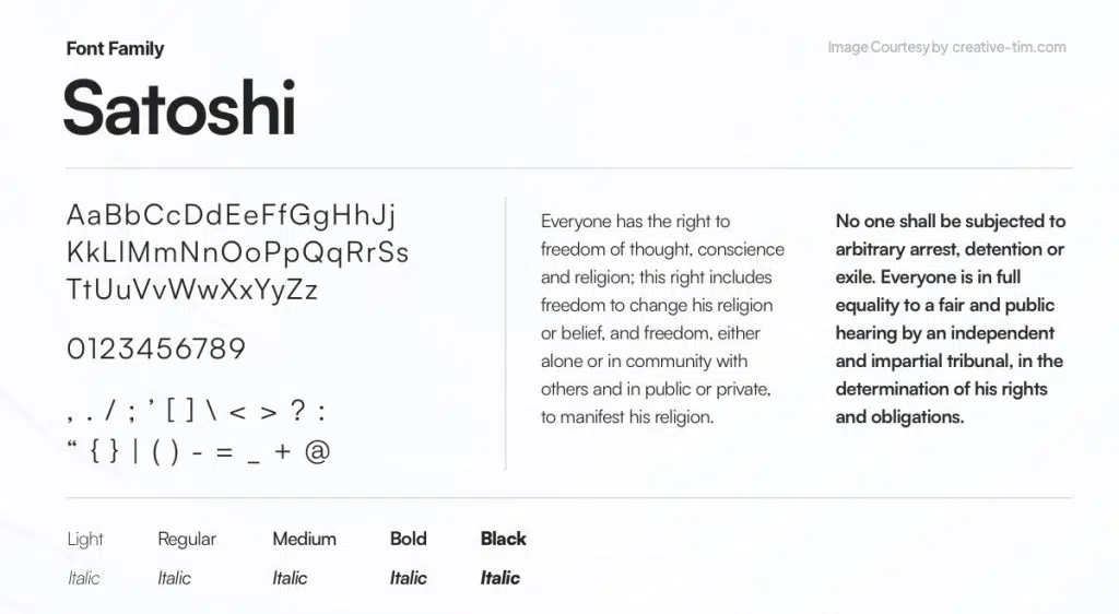 Satoshi est une police sans empattement propre, nette et moderne. Elle se distingue par son équilibre visuel et sa lisibilité naturelle, parfaite pour les supports numériques.