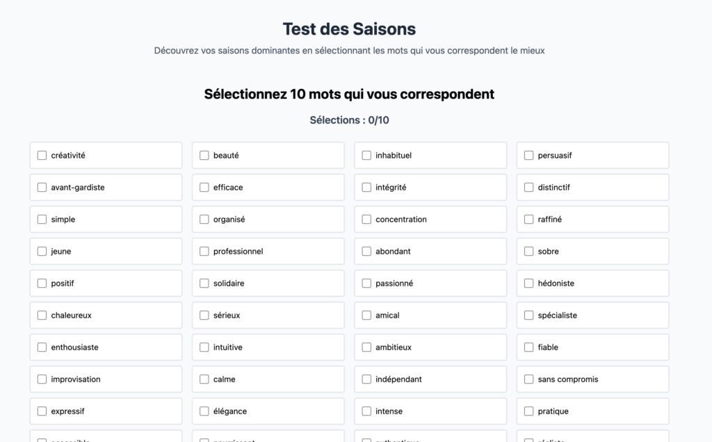 Cet outil gratuit t’aide à savoir quelle saison reflète le mieux ton énergie de marque et à comprendre quelles émotions tes couleurs doivent transmettre.
